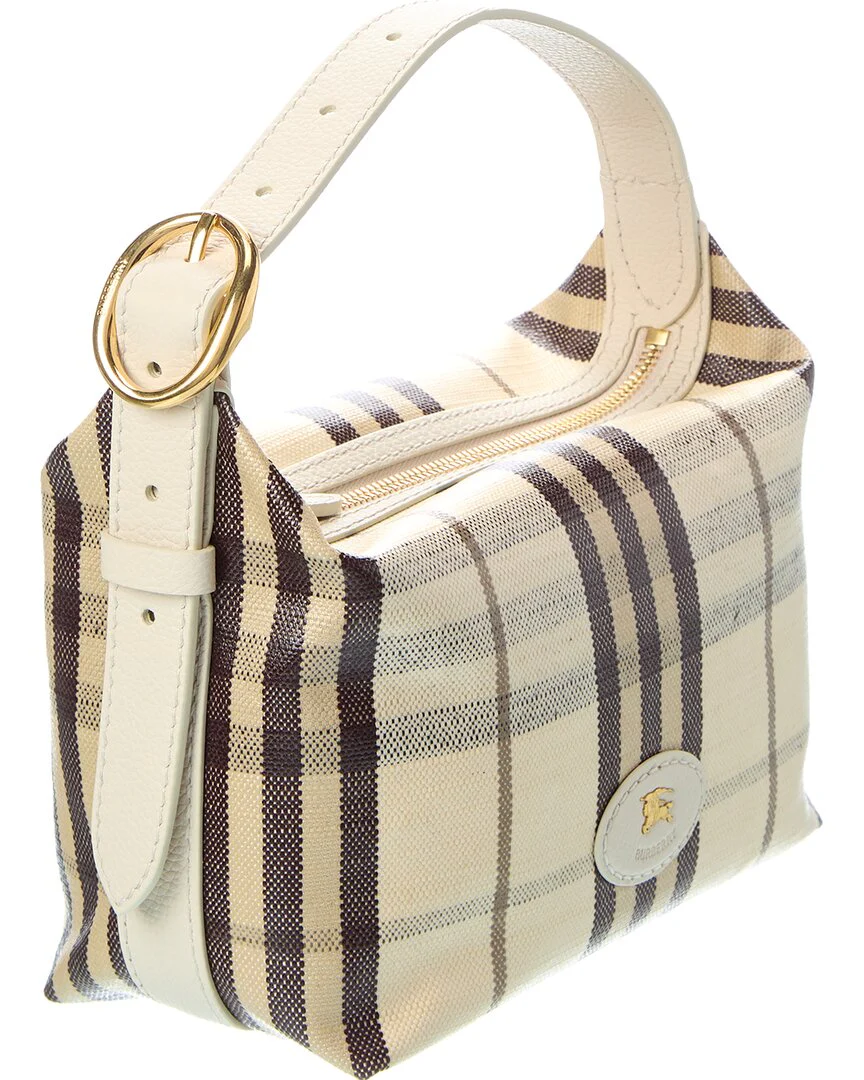 - Highlands Mini Leather-Trim Duffel Bag In Sand Beige Check Coated Canvas And White Leather And Gold-Tone Hardware With Logo Patch