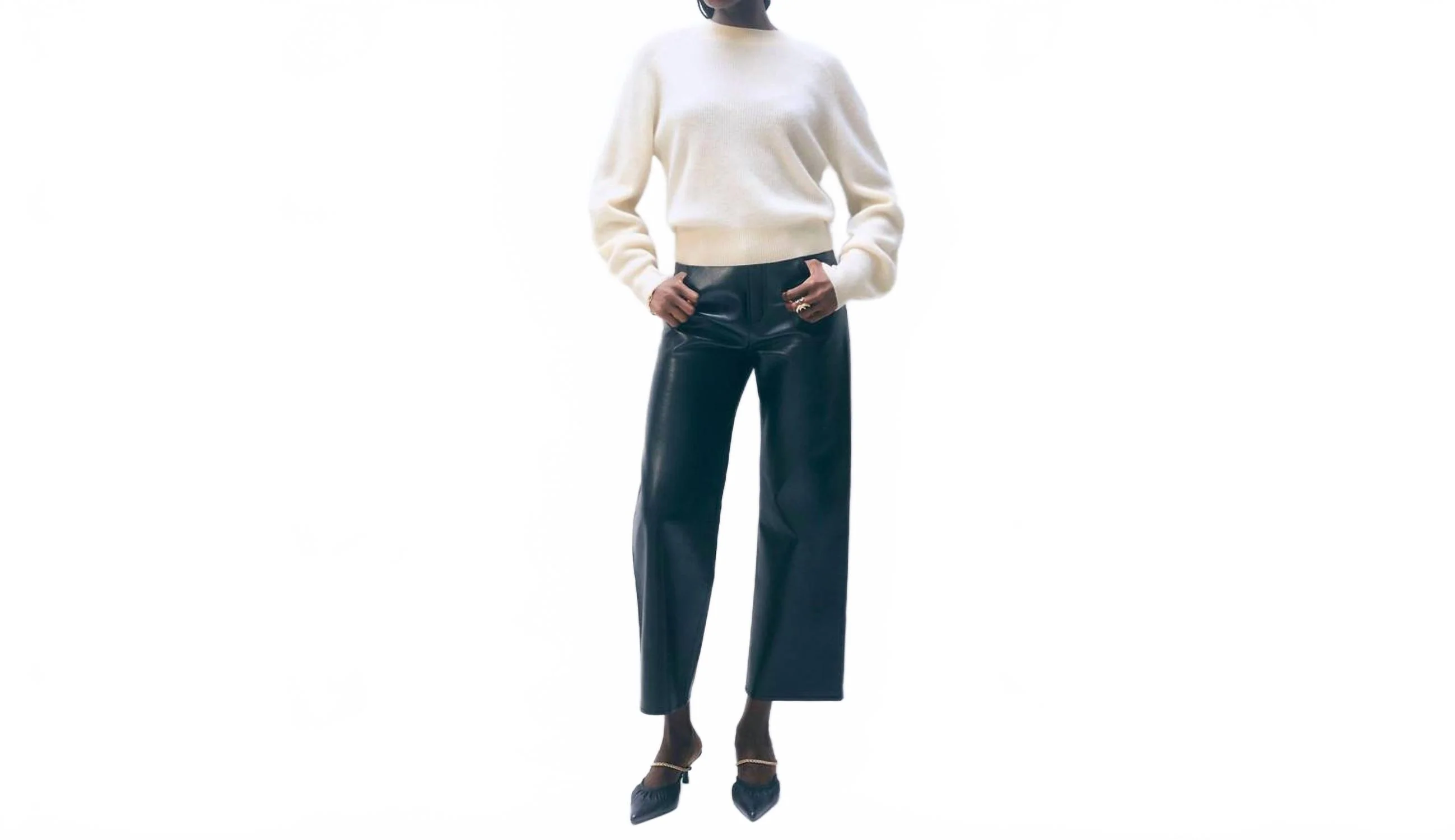 The Cashmere Blouson Sweater by White + Warren offers a sleek crewneck design with a feminine twist in Soft White. This women's sweater features long blouson sleeves that taper at the wrist, providing a voluminous yet refined look. Crafted from 100% Cashmere, it offers a straight fit with a front length of 20 1/2" in size small. Made for the Fall season, the sweater follows a pull-on closure. Care for this solid-patterned piece by hand washing cold or opting for a dry clean, ensuring to reshape and lay flat to dry. The model is 5'10" and wears a size small.