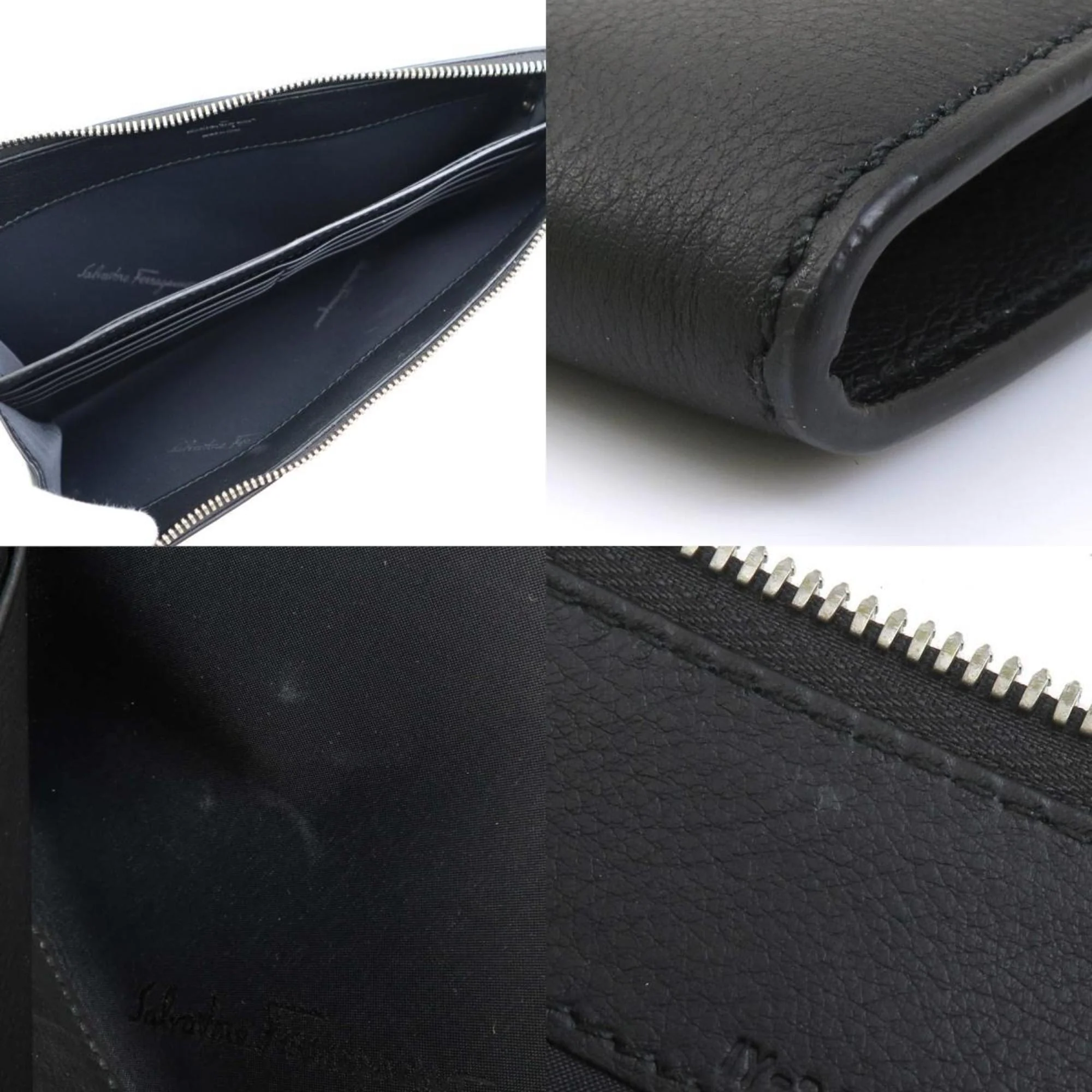 Brand - Salvatore Ferragamo, Color - Black, Material - Leather, Dimensions - 15cm x 24.5cm x 2cm / 5.9'' x 9.64'' x 0.78'', Country of Origin - Italy, Condition - Rank A. Rank A Used - A few traces of usage, some scratches / dirt can be seen but overall in very good condition. Before purchasing, please refer to the images for the exact condition of the item. Before purchasing, please refer to the images of the accessories included with the item. Bag Common Damage Scratch - Insignificant Size - One Size