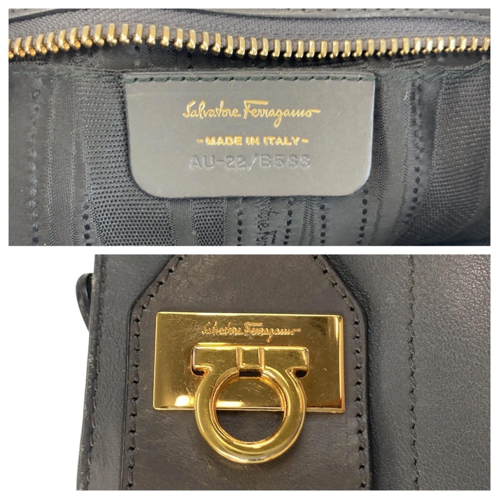 Brand - Salvatore Ferragamo, Color - Gray, Material - Leather, Dimensions - 13cm x 23cm x 2cm / 5.11'' x 9.05'' x 0.78'', Country of Origin - Italy, Condition - Rank AB. Rank AB Used - Traces of usage, scratches / dirt can be seen but generally in good condition. Before purchasing, please refer to the images for the exact condition of the item. Bag Common Damage Scratch - Slight Size - One Size